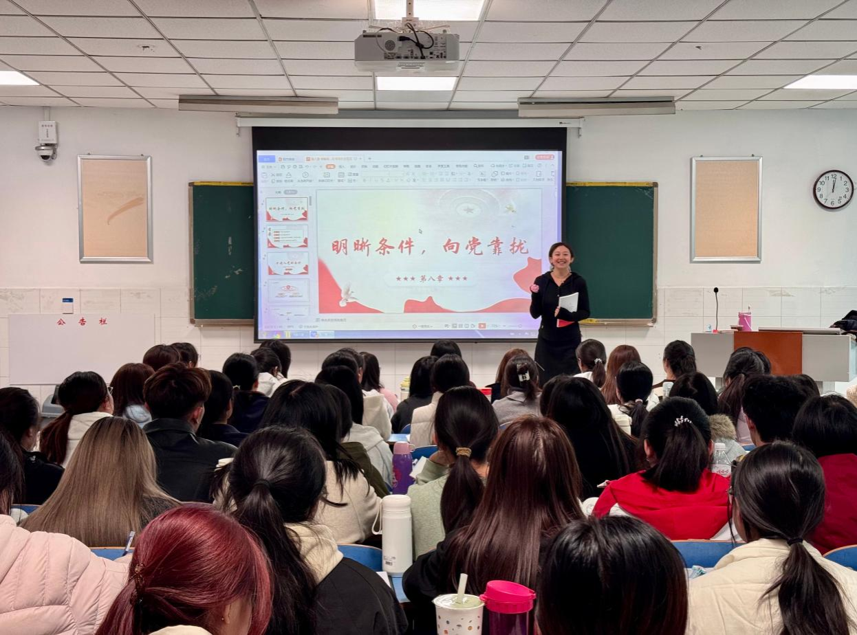 10月22日12点,suncitygroup太阳集团在E102教室举行2025年第二期入党积极分子培训班第三讲——《明晰条件,向党靠拢》,本次党课由学生第二党支部书记葛婉主讲。