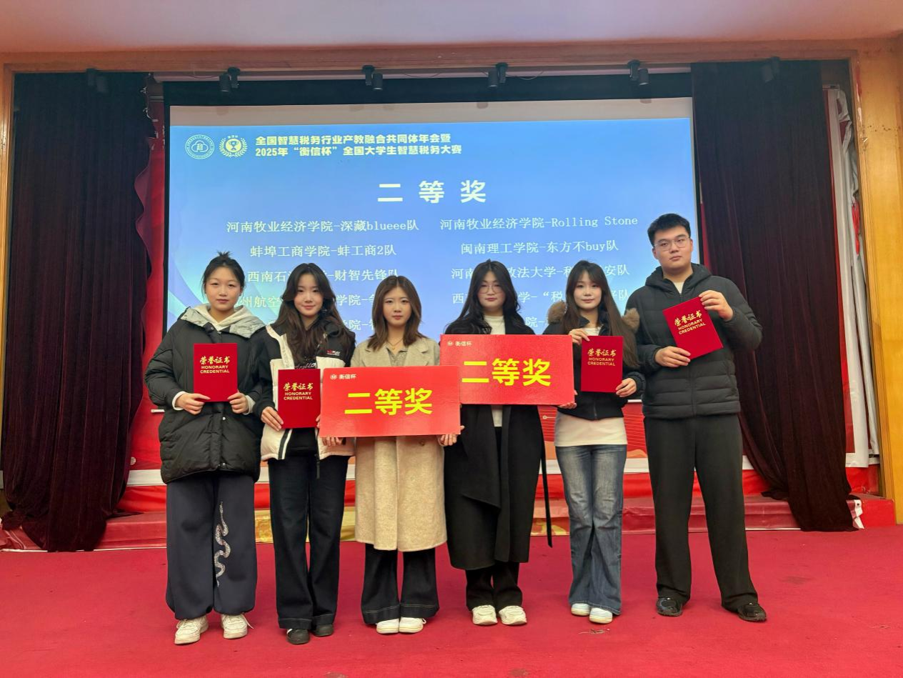 11月29日,2025年全国智慧税务行业产教融合共同体年会暨“衡信杯”全国大学生智慧税务大赛(第十一届)总决赛在江西财经大学举行。经过与全国包括江西财经大学、西南财经大学等知名高校在内的88所本科高校、98支队伍的激烈角逐,河南牧业经济学院suncitygroup太阳集团派出的两支参赛团队凭借扎实的理论知识、娴熟的实操技能和稳定的临场发挥,全部荣获全国本科组二等奖的优异成绩,充分展现了我院学子的卓越风采和财税人才培养的扎实成果。