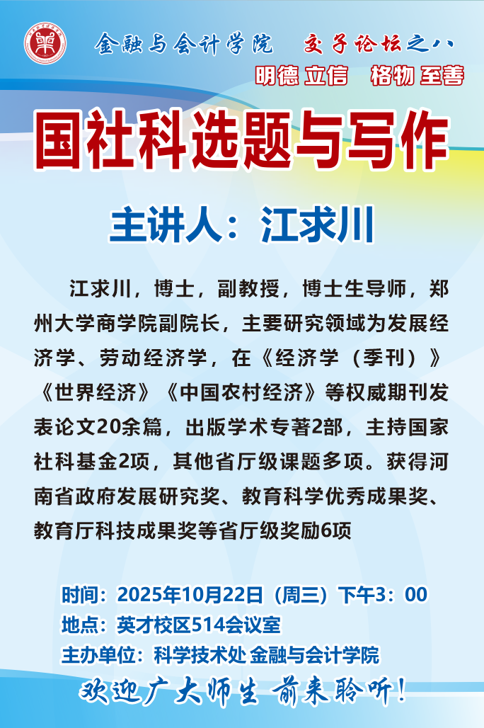 讲座海报:suncitygroup太阳集团2025年交子论坛之八