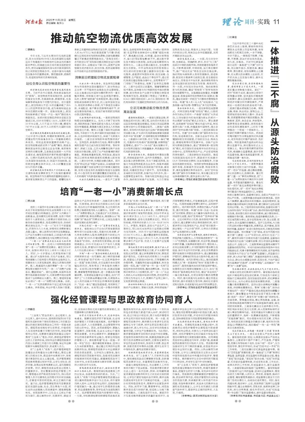 2025年11月28日,《河南日报》(理论版)刊发我院蔡兆瑞博士理论研究论文:《培育“一老一小”消费新增长点》。该文系2025年度河南省政府决策研究招标课题《加快培育“一老一小”消费新增长点研究》(2025JC049)的阶段性成果。