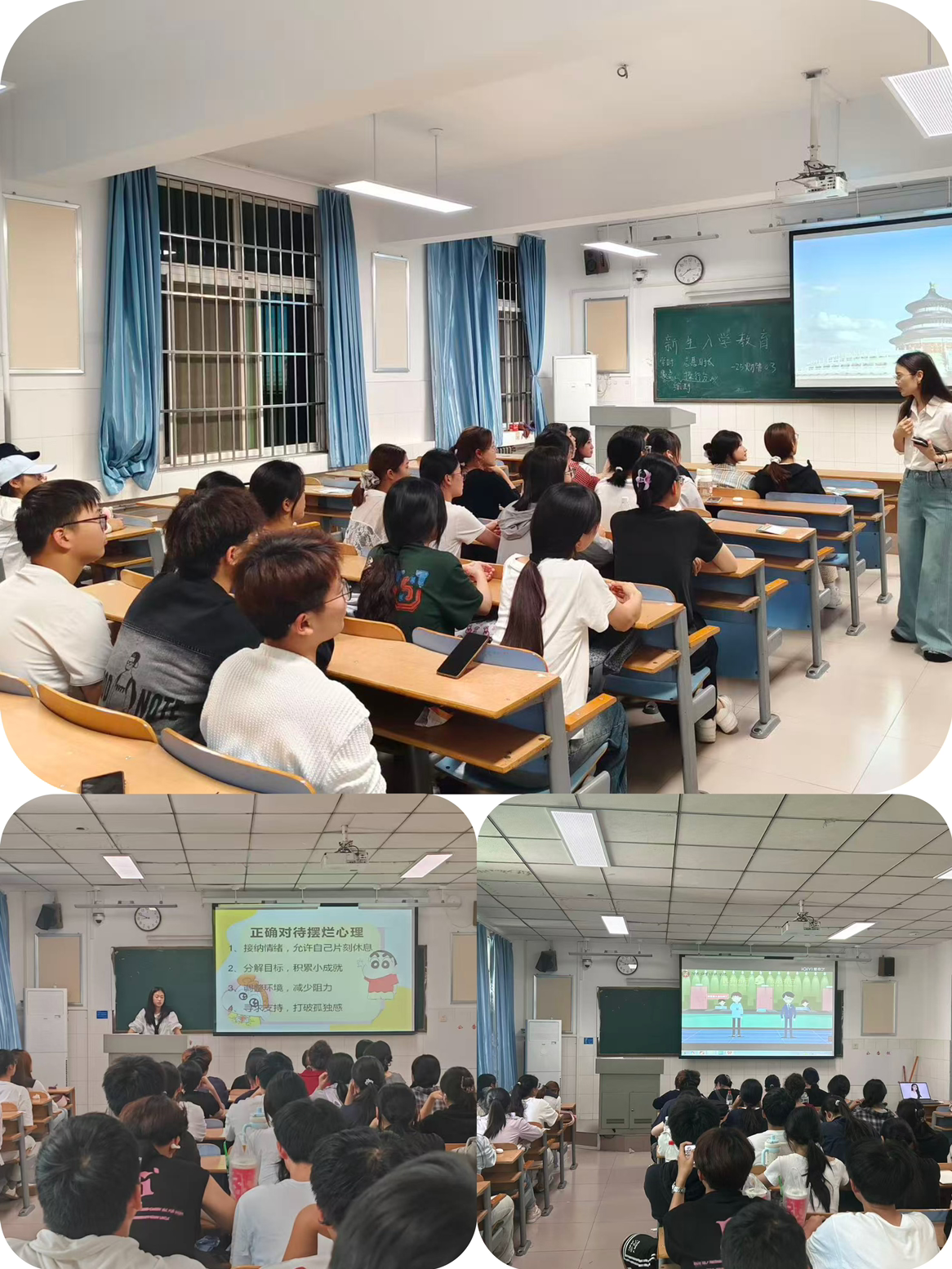 各班辅导员,班主任还为同学们介绍了多种实用的自我关怀与情绪管理策略,包括时间规划、压力疏导技巧等,并倡议同学们在关注自我心理状态的同时,也能主动营造彼此支持、温暖共进的班级氛围。