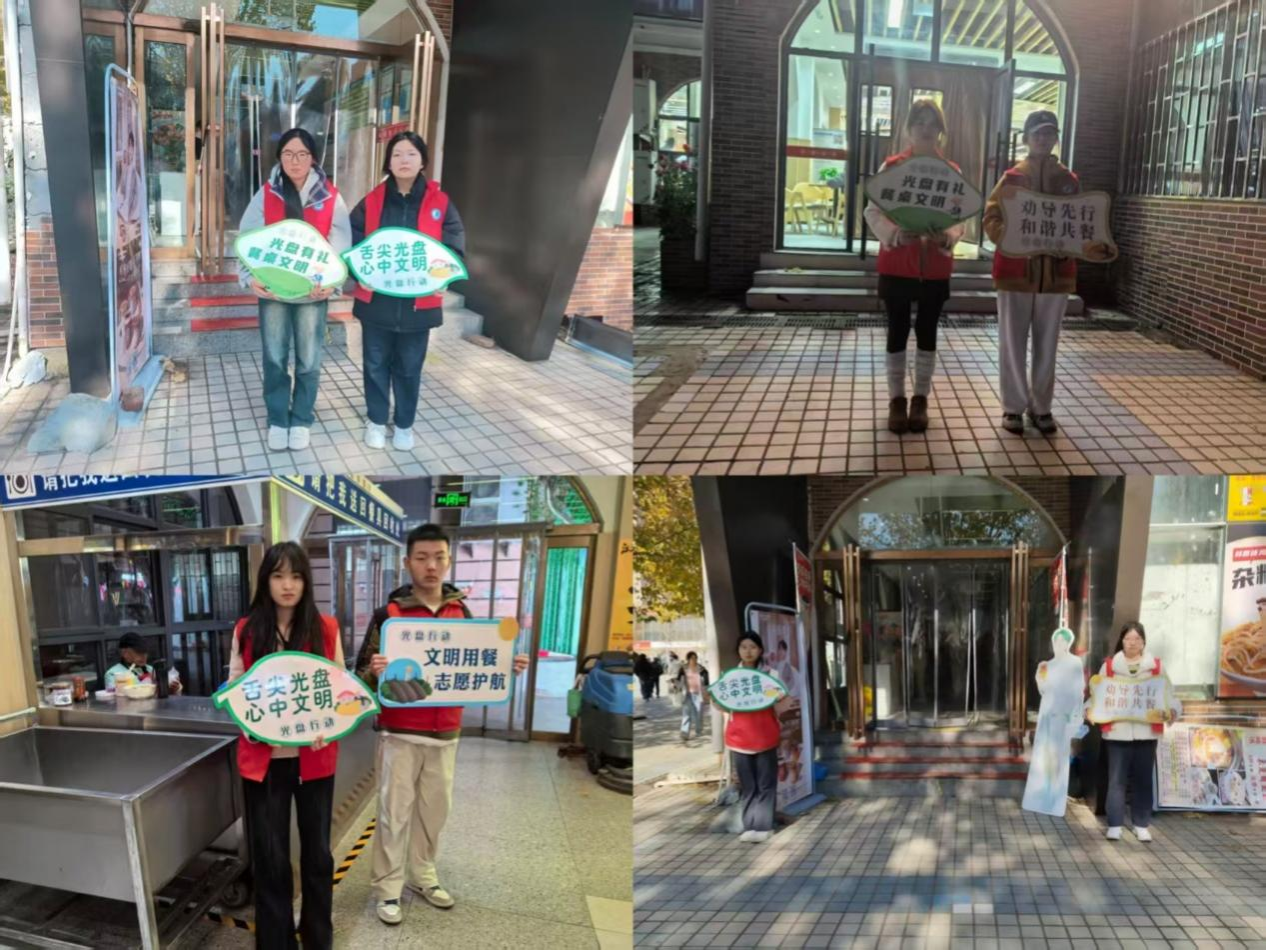 活动期间,我院志愿者提前到岗,分工明确,手持标牌,在餐厅的入口及打饭处引导学生有序排队,劝阻插队行为,维持餐厅秩序。在餐桌旁及餐盘回收处,我院志愿者积极引导学生餐后将餐盘收至指定回收点,提醒他们带走个人物品。面对插队占座等行为时,他们对不文明行为及时进行劝导。志愿者们用他们的耐心与微笑,为我们共同的用餐环境增添一抹亮色。