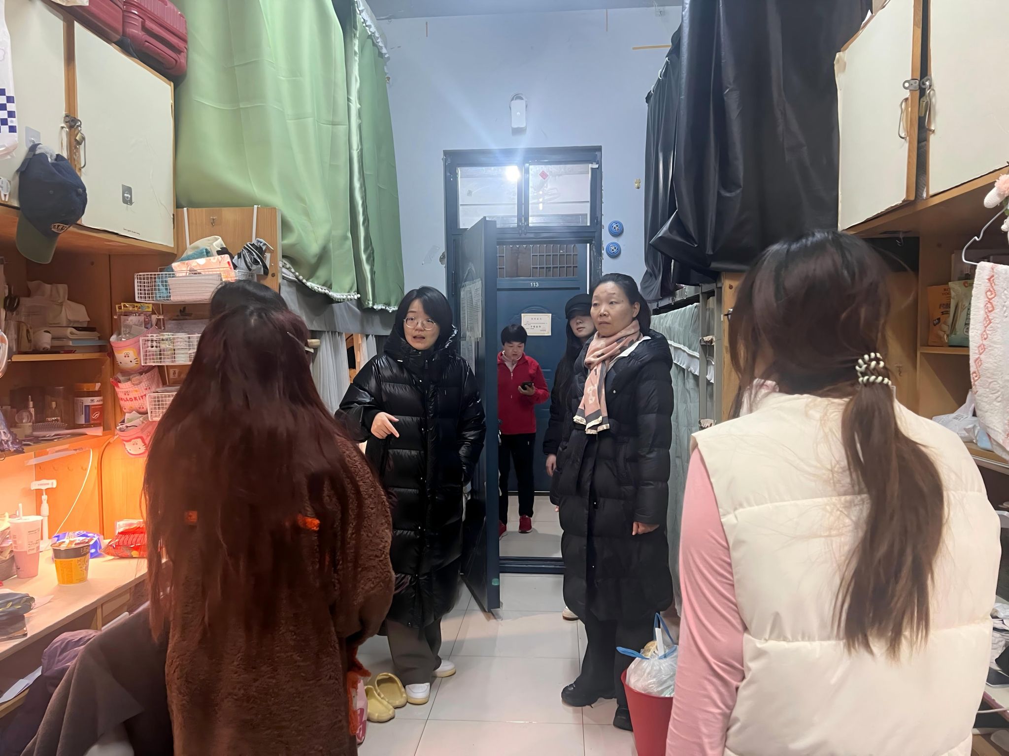 在集中教育的基础上,学院党委副书记周晓娜与团委书记刘慧莹带领辅导员队伍,深入各年级学生宿舍开展走访。走访过程中,院领导与同学们亲切交流,详细询问离校安排与假期计划,反复叮嘱大家要牢固树立安全意识,离校前务必做好宿舍安全检查,返乡途中注意人身财产安全,居家期间遵守法律法规,防范各类风险,并再次强调了离校报备和到家报告制度。同时,院领导也向同学们表达了学院的关心与新春祝福,让同学们深切感受到了来自学院的温暖与关怀。
